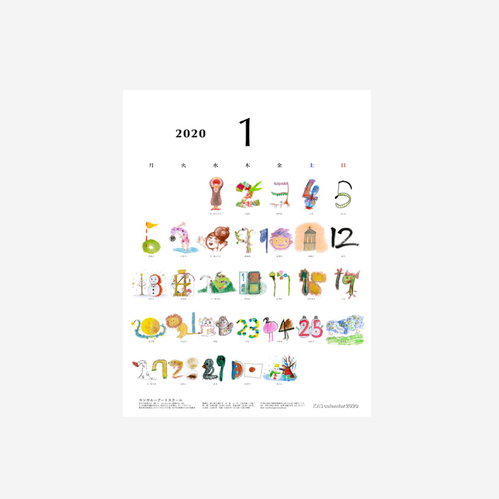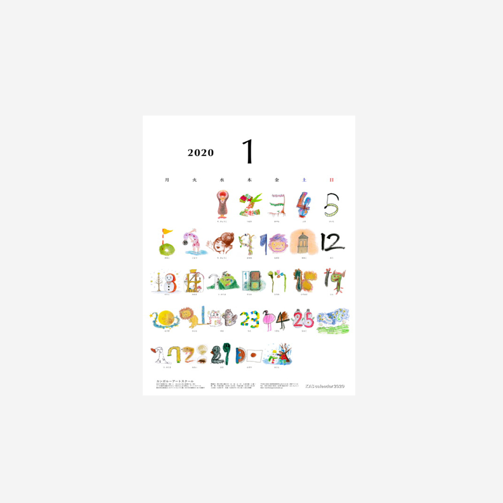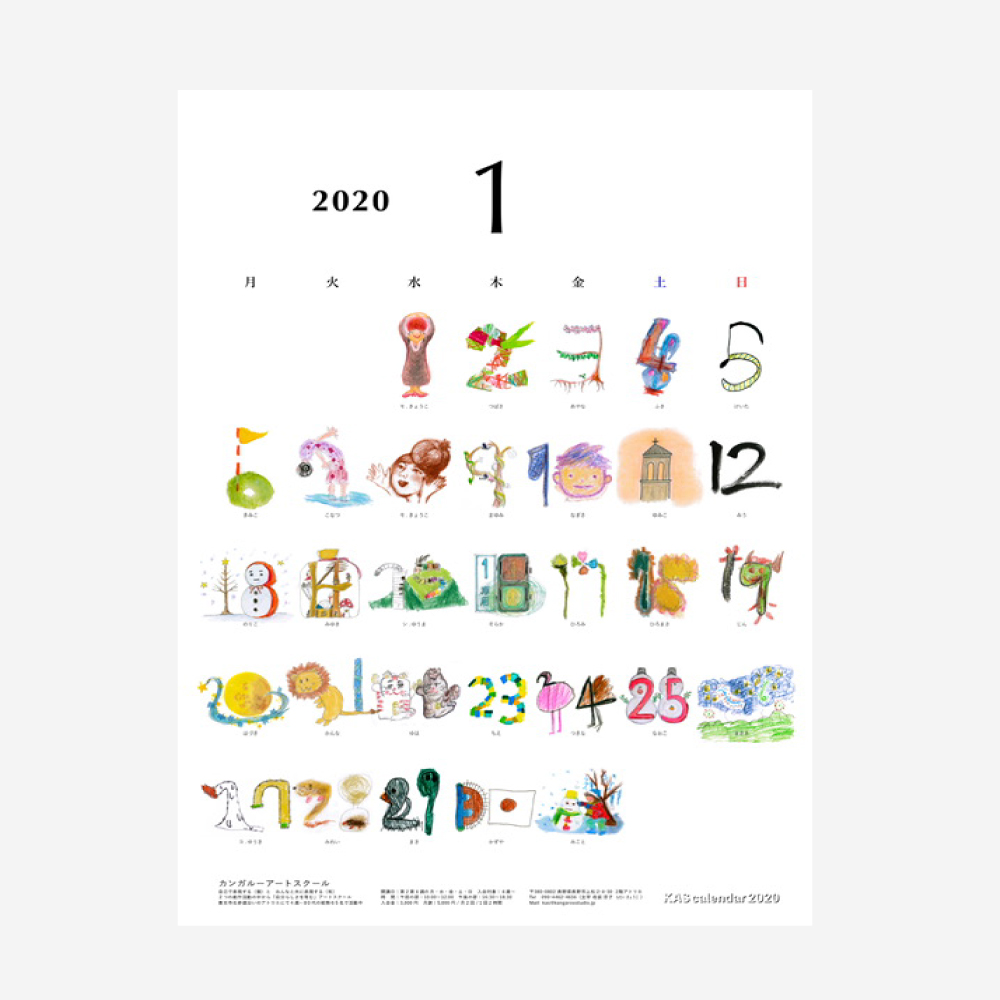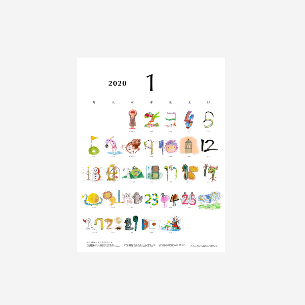 − 365日すべて違う、カラフルで個性的な数字 − 長野県の絵画教室「KANGAROO Art School」の2020年カレンダー。 絵画教室の生徒たちがデザインした数字で構成されています。 365日、すべて数字のデザインが異なります。 ポップなカレンダーで、あなたの毎日がよりハッピーになりますように。